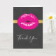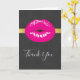 Carte de voeux Merci avec une illustration représentant des lèvres roses chaudes. Image audacieuse et vibrante. Placez-vous sur un arrière - plan en marmite noire. Une bande de dégradé d'or derrière l'image.