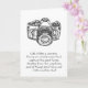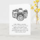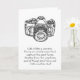 A black and white greeting card with a picture of a camera with enlightening and motivation ating ratio about and how we should tune perspective. "Life is like a camera. Focus on what's important, capture the good times, développement from the negatives, and if things don't turn out - take another shot." L'Author of quote est inconnu. Design and quote is great for friends oms are photographers or any friend who is in need of a pick me up in his or her life. Personnel text inside greeting card.