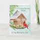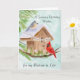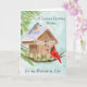 This hand-painted watercolor features a charming birdhouse adorned with a Happy Birthday banner, as a tufted titmouse and a cardinal stop by on a crisp January winter day. Soft seasonal details and gentle colors create a warm, thoughtful scene, making it a lovely birthday piece for a life partner who celebrates in January.