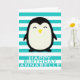Un petit pingouin qui souhaite un joyeux anniversaire à votre enfant.