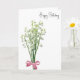 Lit de la vallée avec un arc en satin rose sur blanc pour un anniversaire. Tout le texte peut être modifié.