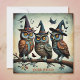 Effrayant mais mignon. Un trio de hiboux aux casquettes de sorcières ; style surréaliste, une oeuvre d'art générée par l'intelligence artificielle, sur invitation d'une fête, pour votre plaisir d'Halloween. *** REMARQUE*** L'USPS exige un affranchissement supplémentaire pour les enveloppes carrés, car elles doivent être traitées à la main.