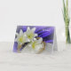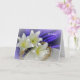 Lis de Pâques blancs et couronne d'épines sur une sainte Bible ouverte et tissu de satin violet.