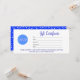 Faites une déclaration avec notre certificat cadeau bleu sophistiqué avec un élégant logo de script. Ce design exquis est l'exemple du luxe et du raffinement, parfait pour les entreprises haut de gamme et la clientèle exigeante. La teinte bleue apaisante crée un sentiment de tranquillité et de confiance, tandis que le logo de script gracieux ajoute une touche de sophistication. Conçu avec une attention minutieuse aux détails, ce certificat cadeau est plus qu'un simple morceau de papier, c'est une représentation tangible des valeurs de votre marque. Customisez-le avec votre logo unique et élevez votre image d'entreprise à de nouveaux sommets. Idéal pour les spas haut de gamme, les boutiques et les services exclusifs, ce certificat-cadeau ne manquera pas d'impressionner. Imprimé de façon impeccable sur papier de qualité supérieure, ce certificat-cadeau offre une sensation luxueuse qui reflète la valeur du cadeau à l'intérieur. Qu'il s'agisse d'un anniversaire, d'un anniversaire ou d'une occasion spéciale, ce design élégant fera que le récipiendaire se sentira vraiment apprécié. Élevez votre expérience de don et laissez une impression durable avec notre certificat cadeau bleu avec un élégant logo de script.