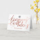 Écriture contemporaine horizontale manuscrite chaleureuse et aimable Business Happy Birthday Greeting Card avec fausse main rose en lettres manuscrites sur un arrière - plan blanc propre. Veuillez noter que l'or rose dans ce design est une impression couleur jaune rose plate et n'est pas un papier à papier. Changez l'image "votre logo ici" avec votre logo ou retirez-la si vous voulez l'utiliser sans logo. N’oubliez pas de customiser le côté avant et le texte intérieur. La couleur blanche de l'arrière - plan est personnalisable et peut être changée en n'importe quelle autre couleur pour correspondre à votre jeu de couleurs d'entreprise.