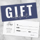 Logo Chic Minimalist Certificat Cadeau Professionnel. Ajoutez votre logo à l'avant pour en faire votre propre logo. Cette carte horizontale simple et élégante est parfaite pour les marques d'entreprise, les petites entreprises ou les particuliers comme les maquilleurs, les esthéticiens, les coiffeurs, et plus encore ! Le design actuel présente un jeu de couleurs bleu, noir et blanc propre, mais vous pouvez customiser les couleurs pour correspondre au style de votre marque. L'avant affiche un mélange chic et professionnel de typographie moderne et de script. Au verso, votre logo et les détails de votre entreprise sont affichés sur le côté gauche, tandis que sur le côté droit, il y a de l’espace pour écrire dans les informations du destinataire. Un design élégant et fonctionnel pour une expérience de don poli.
