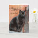 Assis près du hangar à bois de chauffage, dans une profonde réflexion, c'est notre beau chat noir, Blackie. Les mots sur le devant de cette carte disent, "Je savais que ce serait dur, mais" Le message intérieur dit, "Je n'aurais jamais su qu'être sans toi serait ÇA dur. Tu me manques BEAUCOUP !"