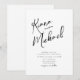 Des textes manuscrits élégants et des accents de brosse sont utilisés pour créer les pièces de cette belle suite mariage moderne. La carte "Invitation" mariage présentée ici présente également un design unique pour vos initiales au verso. Ajoutez facilement votre propre image, vos noms et les détails de l'événement à l'aide du modèle fourni. Recherchez ID940 pour voir d'autres pièces et choix de couleurs pour cet ensemble.