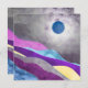 Un magnifique paysage abstrait avec une lune bleue et des collines ondulées colorées et texturées dans les tons violet, violet, bleu, cyan et jaune.