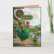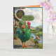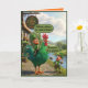 La carte de la Saint-Patrick amusante prend vie avec une pure espièglerie irlandaise dans un style 3D audacieux à la Pixar. Un lutin ravi chevauche fièrement un énorme coq vert à l'extérieur du "Craic Inn", tandis qu'un autre lutin se tient à proximité avec une canne à pêche, absolument stupéfait par la taille et la couleur du magnifique coq. C'est ludique, coloré et rempli de l'humour irlandais qui rend la Saint-Patrick inoubliable.