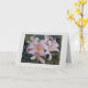 Une carte de voeux pliée standard 5"x7", papier semi-brillant épaisseur 12,5 pt/ poids 110 lb, finition semi-brillante blanche brillante, avec une photo d'un lis de résurrection, à l'avant et à l'arrière de celui-ci, avec une bordure/arrière - plan gris clair, Blanc à l'intérieur.