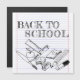 Back to School motif in childish doodle with school utensils on writing pad background.