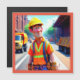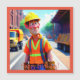 Cette carte d'anniversaire magnétique amusante de dessin animé présente un joyeux ouvrier du bâtiment au travail.