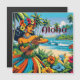 Jolie bande dessinée pop art style ai art. Danseur Hula sur la plage entourée par de jolies fleurs tropicales Hibiscus et la robe de palme avec un arrière - plan de l'océan.