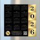 Créez des calendriers 2026 de marque avec le logo de votre entreprise et le code QR personnalisé en utilisant cette conception moderne de calendrier effet noir et or. Idéal pour être utilisé comme outil de marketing ou cadeau de fin d'année pour les clients et les employés. Avec des effets d'or faux, votre logo d'entreprise, les coordonnées et le code QR scannable, ces cartes magnétiques 2026 calendrier peuvent convenir à n'importe quelle marque professionnelle.