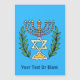 Cette image a été adaptée à partir d'un carrelage juif perse antique et présente une menorah avec un Magen David (Étoile de David) encadré de branches d'olivier. Les imperfections de l'image originale peinte à la main ont été conservées. Ajoutez votre propre texte.