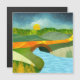 Paysage Abstrait d'une rivière passant sous un pont de pierre avec des collines et une route dorée aux couleurs et textures audacieuses.