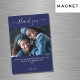 Une couleur bleu marine arrière - plan. Écriture en lettres blanches, à grande main, avec swashes et texte : Merci. Personnalisez et ajoutez votre photo, merci note et nom.