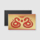 Double Chinois rouge Snake coupé en papier avec l'idéogramme chinois jaune pour Snake au centre sur un cercle rouge + "Bonne année" en anglais et chinois sur papier texturé doré (image imprimée) en arrière - plan. Conception sur carte magnétique horizontale. Carte de voeux, Carte postale de vacances, aimant, autocollant, produits artisanaux et plus bientôt... Parfait pour le Nouvel An Chinois du Serpent 2025 ou Anniversaire (personnes nées dans l'Année du Serpent). — "Le serpent (蛇) est le sixième du cycle de douze ans des animaux qui apparaissent dans le zodiaque chinois lié au calendrier chinois. Selon une légende, il y a une raison pour l'ordre des animaux dans le cycle. Une course a été tenue pour traverser une grande rivière, et l'ordre des animaux dans le cycle était basé sur leur ordre dans la fin de la course. Dans cette histoire, le serpent compensait pour ne pas être le meilleur nageur en faisant une promenade cachée sur le toit du cheval. Lorsque le cheval était sur le point de franchir la ligne d'arrivée, le serpent a sauté, effrayant le cheval, et le hissant ainsi pour la sixième place. On peut dire que les personnes nées dans ces plages de dates sont nées dans l'"Année du serpent", tout en portant le signe élémentaire suivant : 10 février 1929 - 29 janvier 1930 = Serpent de Terre 27 janvier 1941 - 14 février 1942 = Serpent de Métal 14 février 1953 - 2 Février 1954 = Serpent à eau 2 février 1965 - 20 janvier 1966 = Serpent à bois 18 février 1977 - 6 février 1978 = Serpent à feu 6 février 1989 - 26 janvier 1990 = Serpent à terre 24 janvier 20001 - 1 1 Février 2002 = Serpent de Métal 10 Février 2013 - 30 Janvier 2014 = Serpent de Métal 29 Janvier 2025 - 16 Février 2026 = Serpent de Bois 15 Février 2037 - 3 Février 2038 = Serpent de Feu.. pedia)