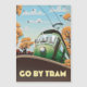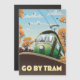 Go By Tram, affiche de voyage de dessin animé vintage avec un ancien tramway vintage.