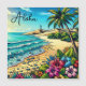 Aloha ! Jolie côte tropicale. Jolie eau bleue, palmiers, fleurs tropicales et phare en arrière - plan. Ai art fait dans un style pop art de la bande dessinée.