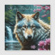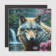 Carte Magnétique Wolf debout dans la rivière avec des fleurs Annive