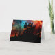 La silhouette d'une maison hantée, d'arbres, d'un cimetière et d'une sorcière volant dans un ciel coloré rouge et bleu nuit.