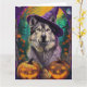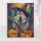 Carte Malamute d'Alaska Sorcière d'Halloween et Citroui