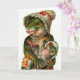 Illustration vintage adorable des animaux dans les vêtements humains. C'est une grenouille-mère qui porte un bonnet et tient son bébé grenouille dans ses bras