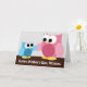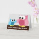 Personalized (or leave blank) this cute custom Mother's Day card featuring a blue Mowl holding the wing of her little blue boy owl.