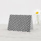 Cette élégante motif géométrique en noir et blanc est une décoration originale. Des méandres blancs inclinent autour de diamants noirs contenant des diamants blancs. Les zigzags noirs séparent subtilement les chemins sinueux. numériquement créé une image. Copyright © 2013 Claire E. Skinner. Tous droits réservés.
