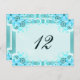 © Sunny Mars Designs - Floral Hibiscus : Light Aqua Blue ou Turquoise Mariage Numéro de table Cartes - Belle, design personnalisé de réception numéro de table de mariage modèle avec une illustration moderne et élégante d'une jolie décoration florale d'hibiscus tourbillonnant bleu aqua classe contre un arrière - plan turquoise.