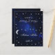 Une carte céleste de la place du mariage avec le nom de l'invité et le numéro de table imprimé à l'avant et les noms de mariée et de mariée et la date du mariage imprimé à l'autre côté (c'est-à-dire l'autre moitié, avant de la plier). Tout le texte est gris clair, presque blanc script calligraphique. L'arrière - plan est le ciel nocturne avec la lune et les étoiles autour du texte. La lune et les étoiles sont gris argenté (fausse feuille d'argent). Taille : 4,5 po x 5,6 po avant pliage, soit 4,5 po x 2,8 po après pliage. La photo de nuit étoilée est de Felix Mittermeier de Pixabay et est gratuite pour un usage commercial.