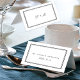 Simple, élégante et de bon goût, cette carte de table classique fait office de carte de séjour. Le modèle est configuré pour personnaliser avec le nom et le numéro de table du client sur le devant et les initiales de la mariée et du marié sur le dos. La carte s'imprime à plat et est facilement pliée à une carte de place debout.La typographie classique de script traditionnel est utilisée pour les initiales monogrammes de la mariée et du marié jumelées avec une police serif intemporelle pour les noms d'invités. Une élégante bordure à deux lignes encadre le texte dans un style formel. Créez une carte pour chaque invité et ajoutez au panier.