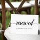 Indiquez les places réservées à votre mariage avec ce panneau chic 5x7. Personnalisez avec deux lignes de texte personnalisé dans le script de calligraphie et les lettres de bloc modernes (avec "Réservé" et le nom de l'invité avec siège réservé) en noir croustillant sur un arrière - plan blanc.