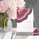 Tous les designs mariages ne sont pas égaux. L'agencement asymétrique des pièces de cet ensemble mariage frappant prouve que ce n'est pas une mauvaise chose ! Des bandes de couleur ondulées, allant du bordeaux au rose doux et gris, avec un centre de cristal scintillant, forment un accent géode/agate sur la plupart des pièces de l'ensemble. La carte "Menu" du mariage présentée ici présente les éléments ci-dessus plus un modèle pour ajouter vos sélections de menu mariage pertinentes. L'inverse vous permet également d'ajouter les noms de la mariée et du marié ainsi que la date du mariage. Recherchez ID647 pour voir toutes les pièces de coordination de cet ensemble.