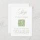 Une carte RSVP élégante avec un code QR scannable — parfait pour les couples qui optent pour les réponses numériques. Doté d'un script vert sage et d'une police serif sur un arrière - plan blanc immaculé, assorti à un jardin moderne ou à des mariages extérieurs formels. Vous pourrez vous inscrire sur votre site Web mariage et accéder aux détails complets de l'événement en effectuant un balayage rapide. Entièrement modifiable. Partie de la collection de Mariages "Iris" — cliquez sur le lien de collection de cette page pour parcourir les pièces de coordination comme les invitations, les menus, la signalisation, et plus encore.