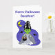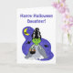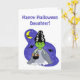 La mariée de Frankenstein est dehors la nuit d'Halloween en faisant un tour et des gâteries avec ses amis chauves-souris. C'est une carte de voeux mignonne pour votre fille qui aime l'art de Kawaii et ce doux séjour!