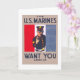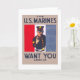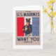 D'après la vaste collection d'affiches Work Projects Administration (WPA) et War de Zazzle, un assortiment extraordinaire d'images emblématiques destinées à promouvoir les arts, le bien-être public et le patriotisme, cette carte commémorative présente une affiche de recrutement des Marines des États-Unis montrant un portrait mi-long de gestuelle marine avec la main contre des bannières rouges, blanches et bleues de l'arrière - plan. Publié entre 1914 et 1918.