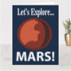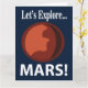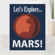 Mars Explorons Mars Card design original par Nisha Prabhu. Lancez-vous dans le cosmos avec notre carte "Explorons Mars" ! Parfait pour les amateurs d'espace ou les rêveurs de votre vie, ce design vibrant capture la beauté impressionnante de Mars. Qu’il s’agisse d’un anniversaire, d’une occasion spéciale ou d’une simple note pour dire "Je pense à vous", cette carte saura éveiller l’imagination et l’émerveillement. Faites-le vraiment unique en ajoutant votre message personnel à l'intérieur. Envoyez un morceau de l'univers à vos êtres chers et inspirez-les à atteindre les étoiles !