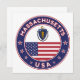 Badge du Massachusetts avec drapeau du Massachusetts et drapeau des Etats-Unis couleurs, forme arrondie. Emblème du Massachusetts. Sceau du Massachusetts. Collection USA Etats.