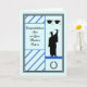 Carte de félicitations pour votre fils qui vient d'obtenir son Masters Degree. La conception a rayé bleu sur le côté gauche de la carte avec un libellé permanent. Le côté droit a un diplômé avec un casquette et une robe détenant un diplôme. La carte est bleue avec une couleur bleu clair et des silhouettes noires. La conception comporte également deux casquettes, et une couronne. Merci à hungryjpeg pour certains des éléments du design.
