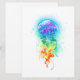 Grande méduse irisée, artistiquement dessinée, brillante, avec de longues tentacules sur le blanc, peinte sur l'arrière - plan multicolore. Méduse arc-en-ciel.