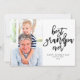 Cette carte de Fête des pères moderne comporte l'expression "meilleur grand-père jamais" dans un script manuscrit noir avec votre message personnalisé en dessous. Personnalisez avec votre photo préférée. Le dos présente des coeurs noirs sur un arrière - plan blanc.