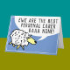 Illustration amusante d'un mouton sur une carte avec le message sur le devant : "Ewe are the best Personal Carer baaa none!" Un jeu de mots sur le blanchiment d'un mouton. Une excellente idée de carte pour louer un professionnel. Personnalisez l'intérieur avec votre propre message.