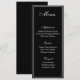La carte menu est affichée sur du papier stock de base avec un design élégant noir et blanc. Le script et le texte standard sont affichés en blanc. Customisez les éléments du menu en cliquant sur le bouton de modification de la personnaliser, recherchez à droite et trouvez les cases appropriées pour modifier vos informations.