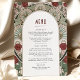 Faites-vous plaisir avec notre carte de menu étonnante, qui présente des bougainvilliers bleu marine et des détails ornés inspirés du style Art nouveau emblématique d'Alphonse Mucha. Imprimée avec une véritable feuille de papier, cette carte de menu est un véritable chef-d'oeuvre qui ajoute élégance et sophistication à tout événement. Les détails complexes qui entourent les informations sur le menu de cette carte, tels que les cadres ornementaux et les éléments décoratifs, sont un clin d'oeil au style signature de Mucha et font d'un design visuellement frappant et inoubliable. Conçu à partir de matériaux de haute qualité, il peut être customisé pour répondre à vos besoins et préférences uniques. Des dîners formels aux réunions intimes, notre carte de menu est le moyen idéal pour ajouter une touche de glamour et d'art à votre expérience culinaire. Alors pourquoi se contenter d'un menu basique quand on peut avoir une oeuvre d'art ? Choisissez notre carte de menu d'inspiration Alphonse Mucha, imprimée avec de la vraie feuille, pour impressionner vos invités et rendre votre événement inoubliable.