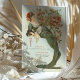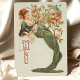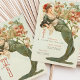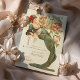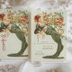 Cette superbe carte de menu mariage Art Nouveau capture l'élégance intemporelle avec une illustration de déesse florale, inspirée de l'art vintage. L'avant présente une déesse sereine ornée de fleurs vibrantes, sur fond de vert sauge et d'ivoire, avec des accents de corail, de rouge rubis et de vert forêt. Le design complexe présente des éléments floraux délicats qui encadrent magnifiquement la déesse, ajoutant une touche romantique à tout thème mariage. Le dos offre un menu détaillé avec des polices serif sophistiquées, avec des options mises gracieusement à la disposition de vos invités. Parfait pour les mariages d'inspiration vintage qui recherchent une touche de charme Art Nouveau classique et de sophistication raffinée.