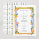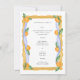 Carte de menu de la Chinoiserie Blanc Bleu Orange pour le déjeuner. Entièrement personnalisable. Déjeuner ou dîner printemps et été.