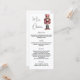 Carte menu du dîner de Noël. Personnalisez et ajoutez un nom/événement, une date et un menu. Arrière - plan rouge, texte blanc. Décoré d'un biscuit rose poussiéreux. Texte : Joyeux Noël